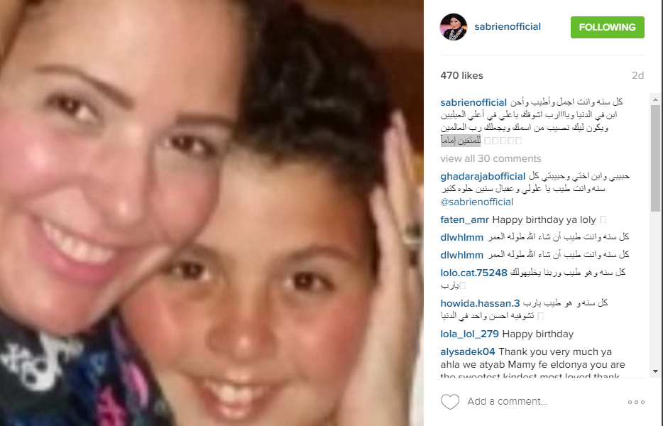 احتفلت الفنانة صابرين بعيد ميلاد نجلها "على" عبر حسابها الشخصى على موقع الصور والفيديوهات الشهير "إنستجرام".