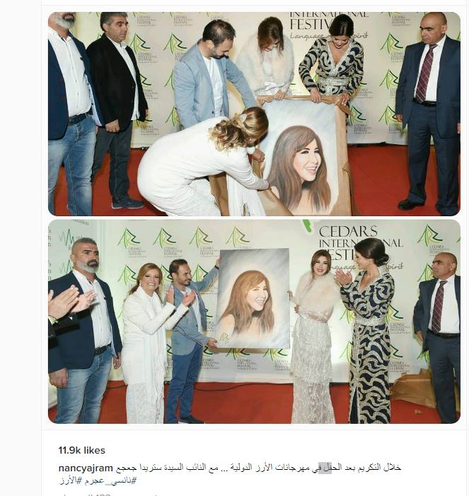كرم مهرجان "الأرز" المطربة نانسي عجرم عقب انتهاء الحفل الغنائي وذلك بحضور النائب السيدة ستريدا جعجع والدكتور سمير جعجع.