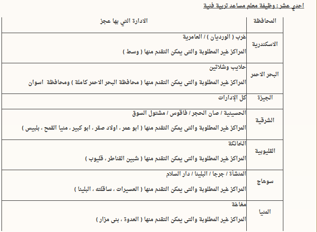 بالنسبة لوظيفة معلم مساعد ( لغة فرنسية، لغة المانية ) بمركز تعليم اللغات الاجنبية ان يكون المتقدم فى نطاق القاهرة الكبرى من محافظات ( القاهرة، الجيزة، القليوبية ).