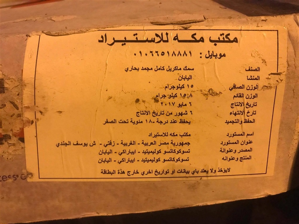وعقب تقنين الاجراءات تم ضبط المدعو بدوى ك م ع السن ٤٣ سنه ومقيم بناحيه مركز ابشواى صاحب ثلاجه مجمدات، وذلك لحيازته وعرضه للبيع عدد ١٠٦ كرتونة اسماك ماكريل مجمد زنه الكرتونه ١٥ كيلو بإجمالي وزن ١٧٠٠ كيلو اسماك ماكريل مجمده منتهية الصلاحية.