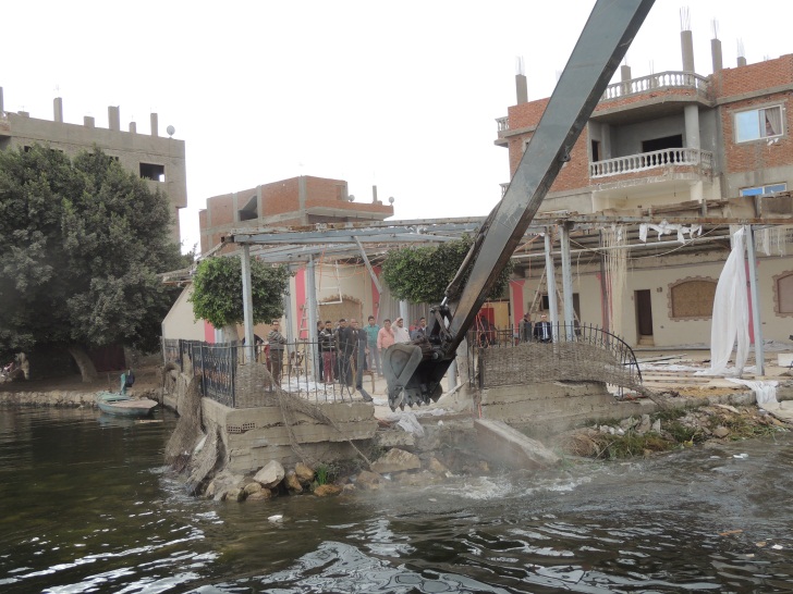 تنفيذ (4) قرارات إزالة لقاعات أفراح مخالفة مقامة على ضفاف نهر النيل بلغت مساحتهم (2500 متر مربع)، بدائرة مركز شرطة منشأة القناطر بمحافظة الجيزة .