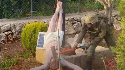 "هآرتس": جندي إسرائيلي يحطم تمثالا للمسيح في بلدة جنوبي لبنان (صورة)