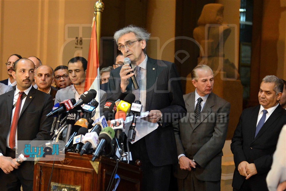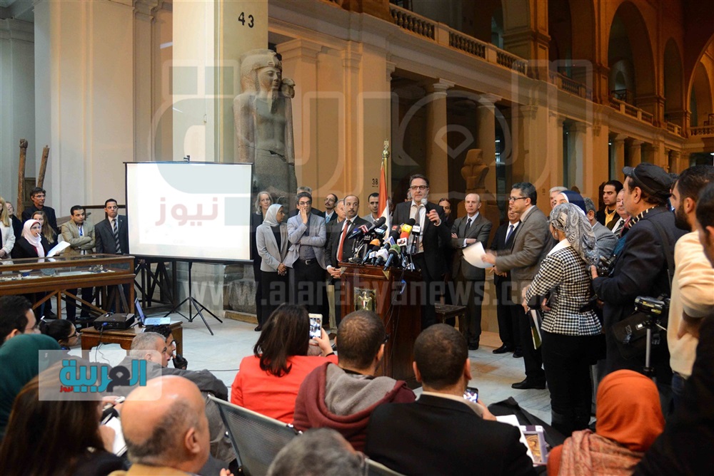 مؤتمر وزير الاثار للإعلان عن ترميم تمثال توت عنخ آمون الأربعاء 16/ديسمبر/2015 - 11:30 م 12/16/2015 11:30:51 PM تصوير l محمد أنور مؤتمر وزير الاثار للإعلان عن ترميم تمثال توت عنخ آمون