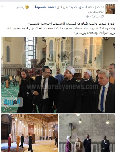 وتابعوا بسخرية: "هيلارى كلينتون عندما زارت المساجد بمصر وضعت على رأسها غطاء للشعر احتراما لحرمة المسجد لكن نائبة بورسعيد المسلمة لم تعرف شئ عن ذلك"