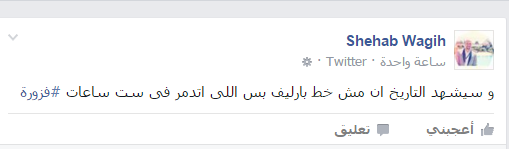 وكتب "وجيه" في تغريدة له على موقع التواصل الإجتماعى "تويتر": "وسيشهد التاريخ أن مش خط بارليف بس اللي اتدمر فى ست ساعات".