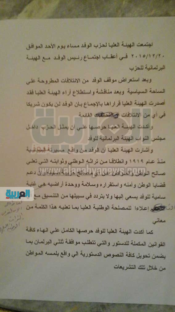أعلن حزب الوفد رسميًا، عدم مشاركته في أي ائتلافات قائمة، وأكدت الهيئة حرصها على أن يمثل الحزب داخل البرلمان كتلته البرلمانية.