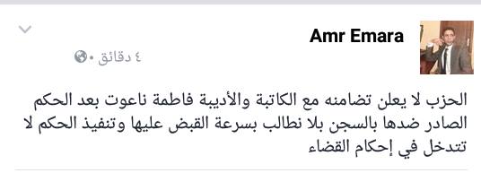 وطالب عمارة عبر تدوينة له على موقع التواصل الاجتماعي المصغر "تويتر"، بضرورة سرعة القبض عليها وتنفيذ الحكم، مؤكدًا على عدم تدخلهم في أحكام القضاء.