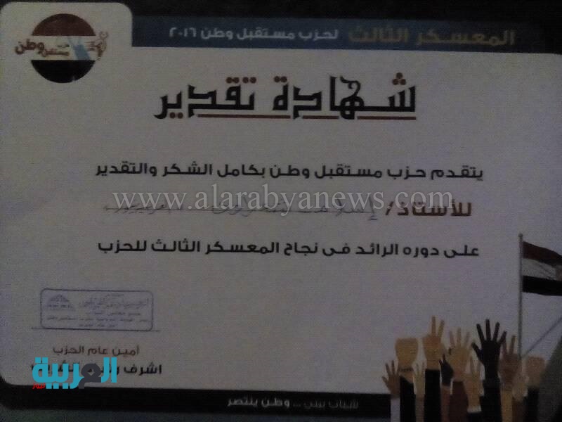 بالصور.. حزب مستقبل وطن يكرم محرر "العربية نيوز"