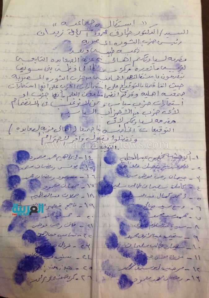 وقال عناني في بيان، إنه تم إيهام البسطاء من أهالي الصعيد بالتوقيع على استمارات على أنها استمارات لجمعية خيرية لتقديم مساعدات لهم مستغلين عدم قدرتهم على القراءة والكتابة، وهو الأمر الذي تبدد بعد قيام نداء مصر بفصل طارق زيدان وتقديم بلاغات للنائب العام ضده وتم اكتشاف الأمر وهو الذي دعا هؤلاء البسطاء للاستقالات الجماعية. وقد قررت الإدارة القانونية للائتلاف اتخاذ كافة الإجراءت القانونية في هذا الشأن.