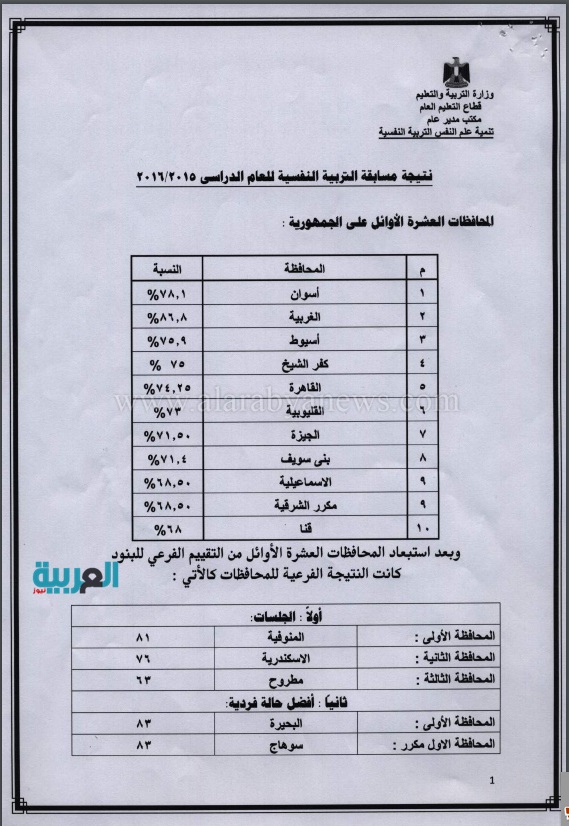 بالمستندات.. نتيجة مسابقة التربية النفسية 2016