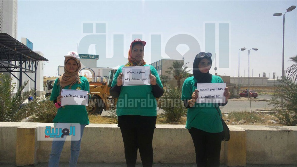 ورفع المشاركون خلال الوقفة لافتات أثناء مشاركتهم في الوقفة مدون عليها "الجيش والشرطة والشعب إيد واحدة"، "كلنا الجيش المصري"، "لا للإرهاب الاسود"، و"سنهزم إرهابكم ونبنى مستقبل وطن".