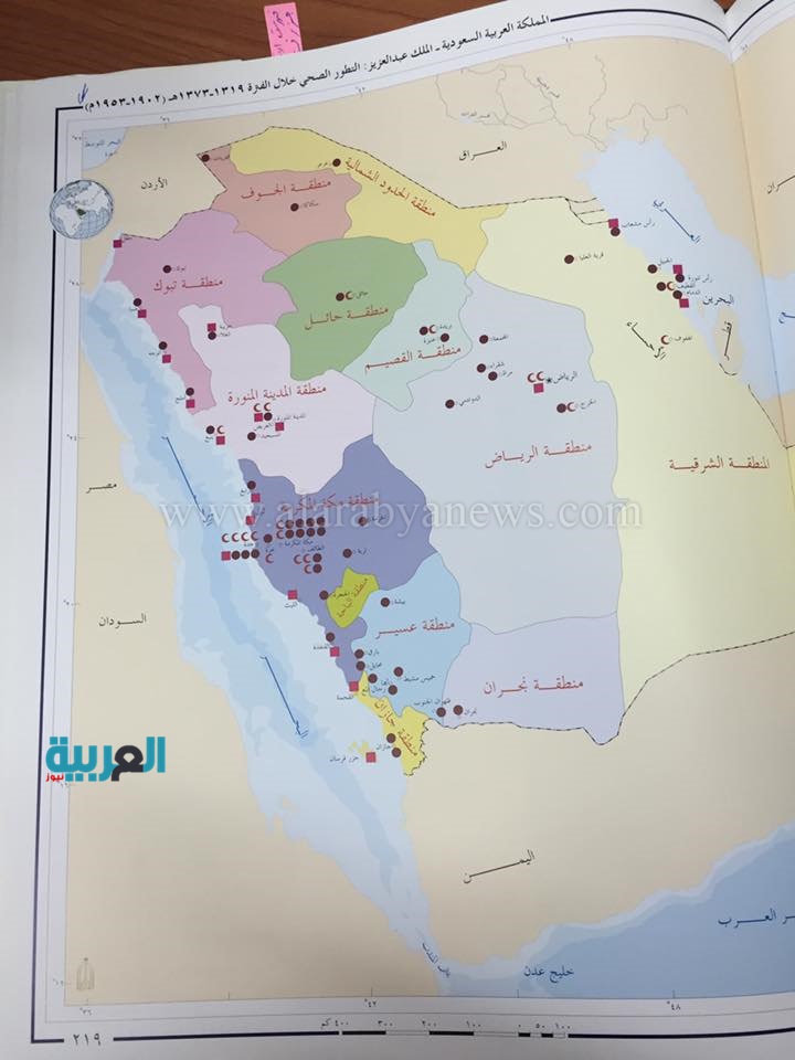 10_ الأطلس التاريخي للسعودية الذى يرصد بالصور مراحل تأسيس المملكة من الدولة السعودية الأولى، ثم الثانية حتى توحيد شبه الجزيرة تحت اسم المملكة عام 1932، وتمر إعداد الأطلس بدار الملك عبد العزيز عام 2000، وكان يرأس مجلس إدارة الدار وقتها الأمير سلمان "الملك الحالى"، والأطلس يضم مئات الخرائط للبحر الأحمر، ولم ترد تيران أو صنافير بأى خريطة منهم إلا خريطة توضح مسار حركة ابن رفادة التى تحركت من مصر إلى الجزيرة فى الثلاثينيات للحرب مع السعوديين، ثم الأطلس الكتابى ذكر أن جزر السعودية فى البحر الأحمر هى جزر فرسان فقط.