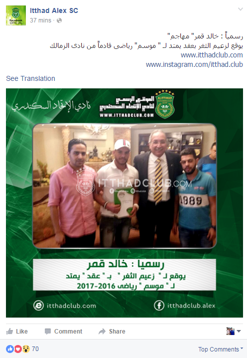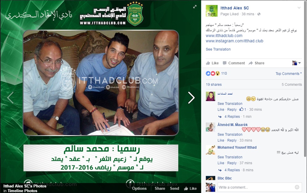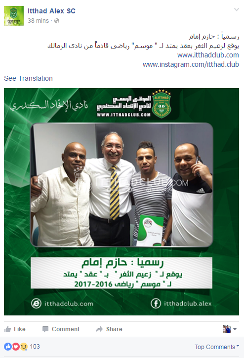 وعبر صفحته الرسمية أكد نادي الاتحاد السكندري التعاقد مع حازم إمام ظهير أيمن الفريق الأبيض، والمهاجمين محمد سالم وخالد قمر.