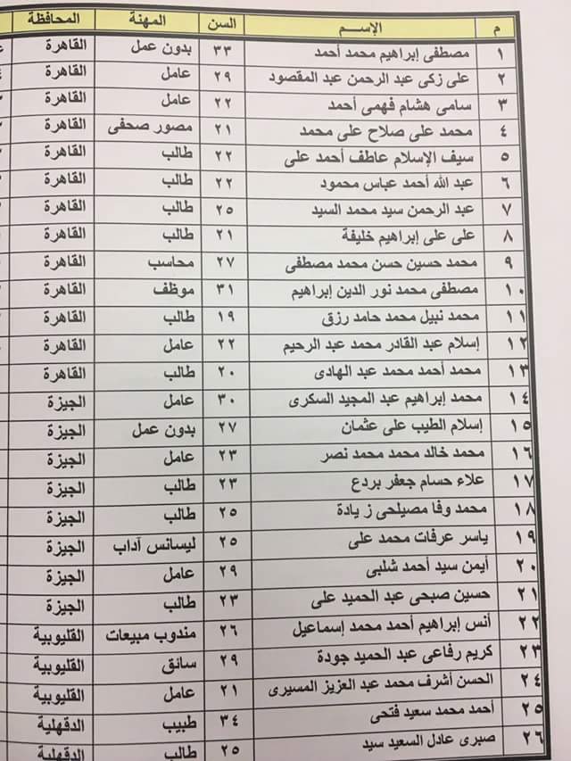 ننشر كشوف أسماء الشباب المُفرج عنهم بالعفو الرئاسي الخميس 17/نوفمبر/2016 - 04:55 م 11/17/2016 4:55:00 PM عاطف عبد العزيز صورة أرشيفية تنشر العربية نيوز كشوف الاسماء التى قدمتها اللجنة المعنية بالافراج عن الشباب المحجوز على ذمة القضايا، ومنهم المصور الصحفى محمد على صلاح، والمدهش ان معظمهم من طلاب الجامعات.