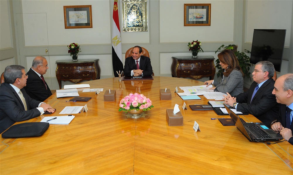 اجتمع الرئيس عبد الفتاح السيسي اليوم مع المهندس شريف إسماعيل رئيس مجلس الوزراء، وذلك بحضور وزراء التضامن الاجتماعي، والمالية، والتموين.