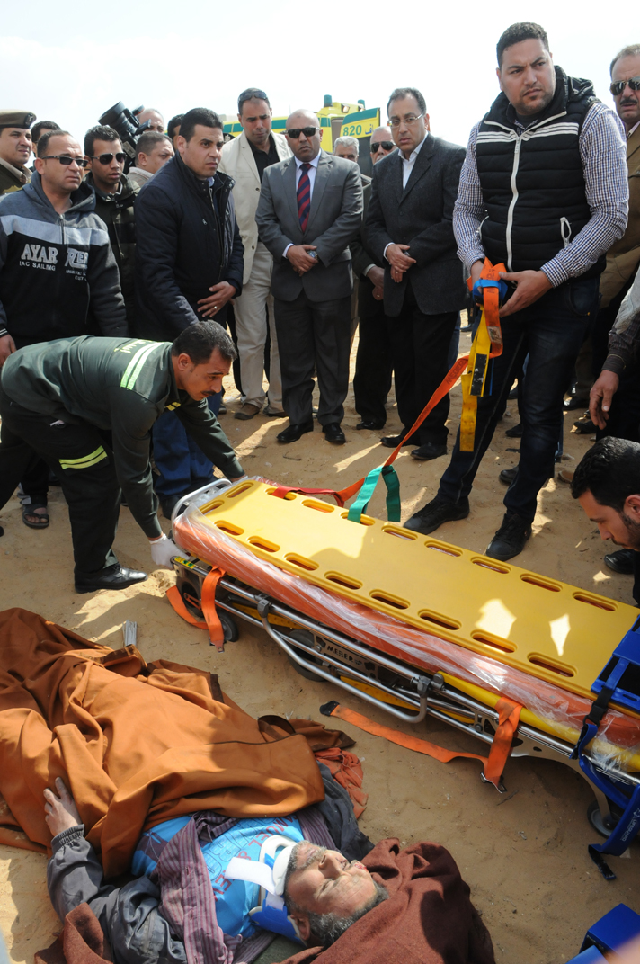 "مدبولي" يوقف زيارته في مدينة السادات لإسعاف مصاب بحادث بالطريق