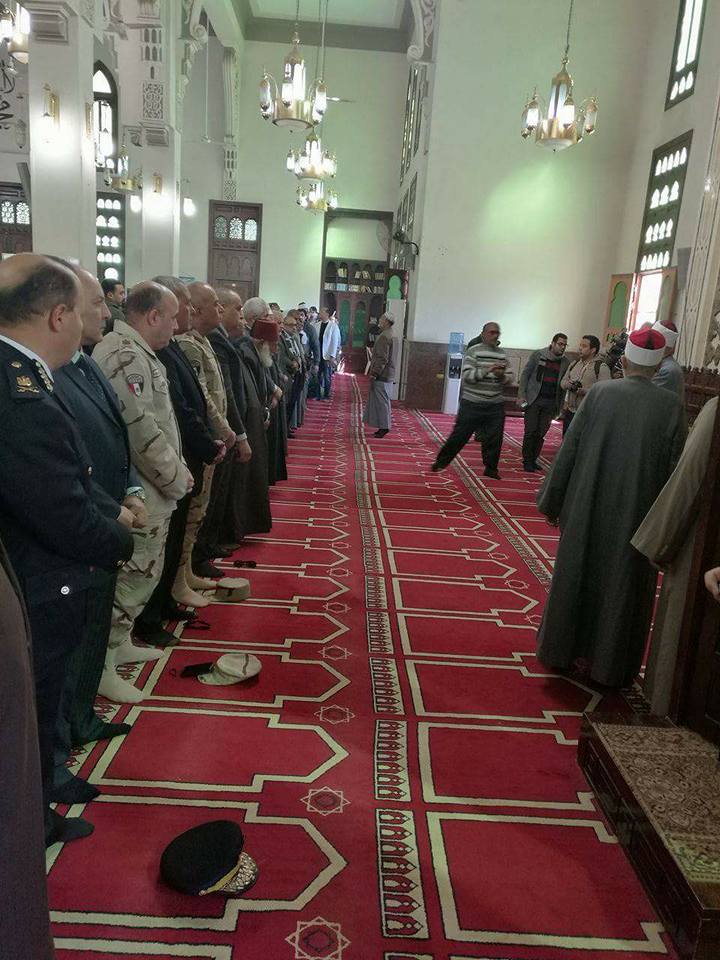 حيث قام الشيخ منتصر عزب رئيس قسم المساجد الحكومية بتلاوة ايات من الذكر الحكيم بمسجد حمزة بن عبد المطلب، فيما تحدث الشيخ ايهاب بيوض مدير عام الدعوة عن فضل الشهادة في سبيل الله، مؤكد أن يد الغدر والخيانة لن تزيدنا إلا قوة وصلابة وإيمانا بهذا الوطن وإخلاصًا في الدفاع عنه وعن كل حبة رمل منه، مشيرًا إلى أن مصر ستظل صامدة أبية ولن تنكسر أمام الإرهاب الأسود، لافتا أن هذه الحوادث الإرهابية تؤكد لنا حجم التحديات التي يواجهها الوطن ورجال جيشه وشرطته البواسل.