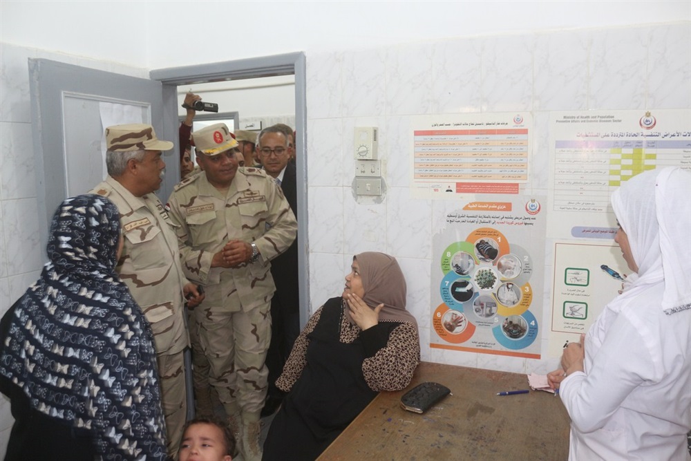 وفي الجولة تم تفقد القافلة الطبية والتى شملت عدة تخصصات طبية لتقديم الكشف الطبي لأهالى المنطقة وصرف العلاج مجاني لهم بمستشفي العبور التخصصي، كذلك نظمت الهيئة العامة لتعليم الكبار لفرع السويس أعمال القافلة التعليمية وإجراء إمتحانات فورية لأهالي المنطقة لمحو أميتهم ، وتم توزيع مواد وسلع تموينية من القوات المسلحة .
