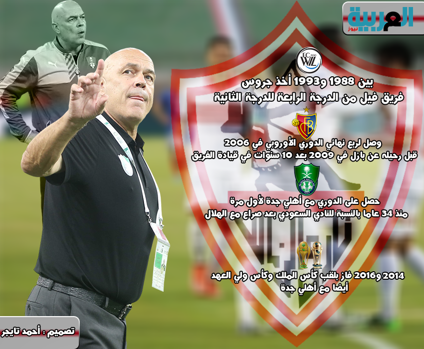 إنفوجراف.. إنجازات المدير الفني الجديد للزمالك الإثنين 23/أبريل/2018 - 04:57 م 4/23/2018 4:57:12 PM تصميم: احمد تايجر كريستيان جروس مدير فني مدير الزمالك