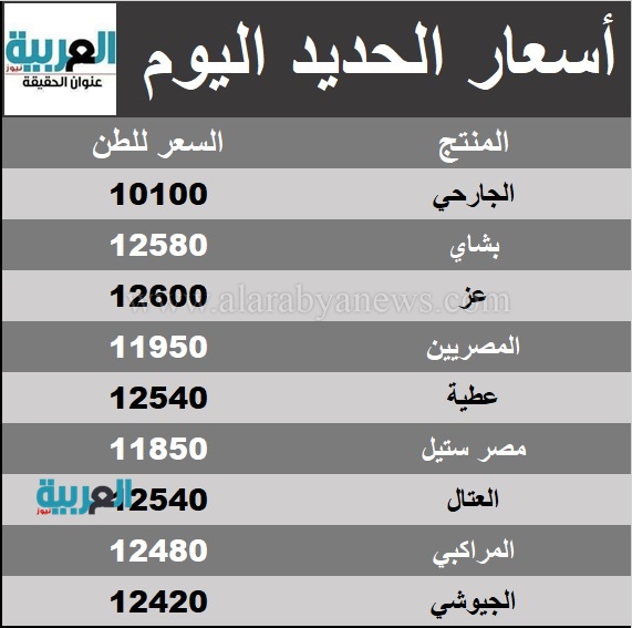 تعرف على أسعار الحديد اليوم الثلاثاء 10/يوليو/2018 - 09:30 ص 7/10/2018 9:30:16 AM إستقرت أسعار الحديد اليوم بالسوق المحلى مقارنة بأسعار يوم أمس الإثنين."العربية نيوز" رصدت الأسعار للشركات فجاءت على النجو المبين بالجدول التالي"
