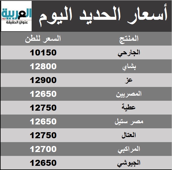 تعرف على أسعار الحديد بعد إرتفاعه اليوم الأربعاء 11/يوليو/2018 - 09:24 ص 7/11/2018 9:24:16 AM إرتفعت أسعار الحديد اليوم بشكل ملحوظ فى السوق المحلى متخطية الـ 12800 جنيه."العربية نيوز" رصدت أسعار الحديد لدى الشؤركات اليوم فجاءت على النحو التالي:
