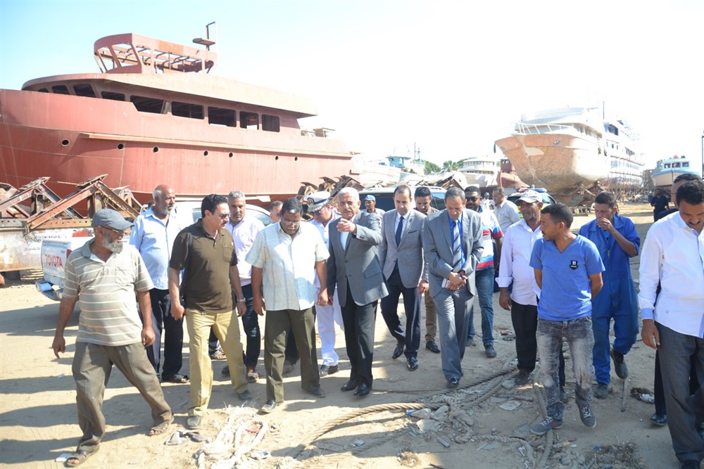 بالصور.. محافظ السويس يشدد علي سرعة تطوير مرسي السلخانة والقزق الميكانيكى