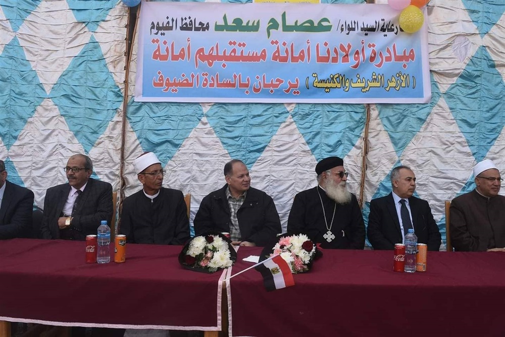 ثم ألقي محافظ الفيوم كلمة أشاد فيها بدور بيت العائلة المصرية وأكد علي التواد والتواصل بين المجتمع مسلمين ومسيحيين مشدداُ علي غرس الحب لدي النشئ والتواصل بصفة مستمرة وتبادل الزيارات بين طوائف المجتمع وطالب الجميع بالتكاتف والتعاون والعمل من خلال الفريق الواحد للإرتقاء بشتي قطاعات الدولة وأوضح محافظ الفيوم أن المحافظة تقوم بجهد كبير في أعمال النظافة والتجميل ومواجهة التعديات ورفع الإشغالات وطالب بالتوعية المجتمعية والمشاركة الفاعلة والإنتقال من حيز القول إلي الفعل