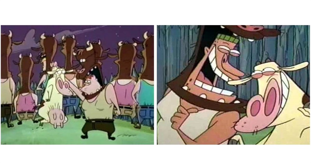في حلقة للمسلسل الشهير Cow And Chicken، يكون هناك عصابة من الفتيات ظنّ أنّها عصابة للمثليات، حيث أنّ الفتيات يتصرفن كالرجال ويشبهن الرجال، منعت الحلقة حيث أنّها لا تلائم التعريف الجندري المعتمد.