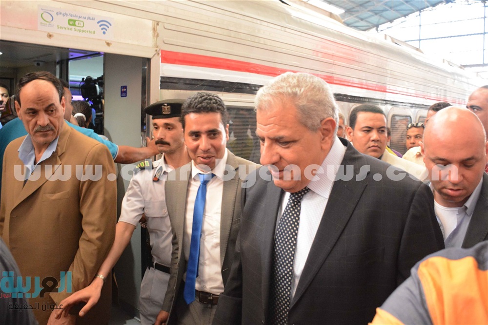 "محلب" يفتتح قطار "واي فاي" من القاهرة إلى الإسكندرية الإثنين 24/أغسطس/2015 - 05:42 م 8/24/2015 5:42:42 PM تصوير هشام عبد الحميد شهد المهندس إبراهيم محلب، رئيس مجلس الوزراء شهد المهندس إبراهيم محلب، رئيس مجلس الوزراء، والمهندس هاني ضاحي، وزير النقل، تشغيل أول رحلة قطار مصري مكيف"VIP"، يعمل بنظام "الواي فاي".