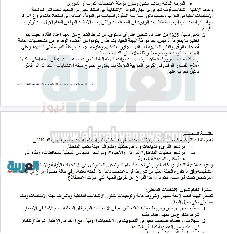 "العربية نيوز" تنفرد بنشر وثيقة مبادرة "كيف تريد وفدك أن يكون"