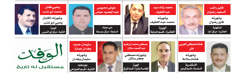 وتقدم فى محافظة الإسماعيلية، سليمان البعلى عن دائرة مركز التل الكبير، وعن محافظة جنوب سيناء ترشح سالم زيدان عن دائرة قسم أبورديس، وفى محافظة الدقهلية ترشح حمدى درويس عن دائرة مركز ميت غمر، وصلاح أبو السعود عن دائرة قسم أول المنصورة، وفايز رضوان عن دائرة مركز أجا، وفى محافظة الشرقية ترشح أمجد العزازى عن دائرة مركز أبو حماد، وأحمد عشماوى عن دائرة مركز أبوصقر، وعميد طارق عبدالله عن دائرة قسم أول الزقازيق.