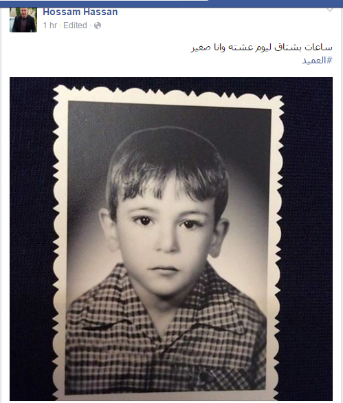 حسام حسن: "ساعات بشتاق ليوم عشته وأنا صغير" السبت 12/سبتمبر/2015 - 09:12 م 9/12/2015 9:12:47 PM بهاء سيد حسام حسن نشر حسام حسن المدير الفني لنادي المصري صورة له وهو صغير، على حسابة الشخصي على موقع التواصل الاجتماعي "فيس بوك"، وعلق حسام حسن على الصورة التي نشرها: "ساعات بشتاق ليوم عشته وأنا صغير".