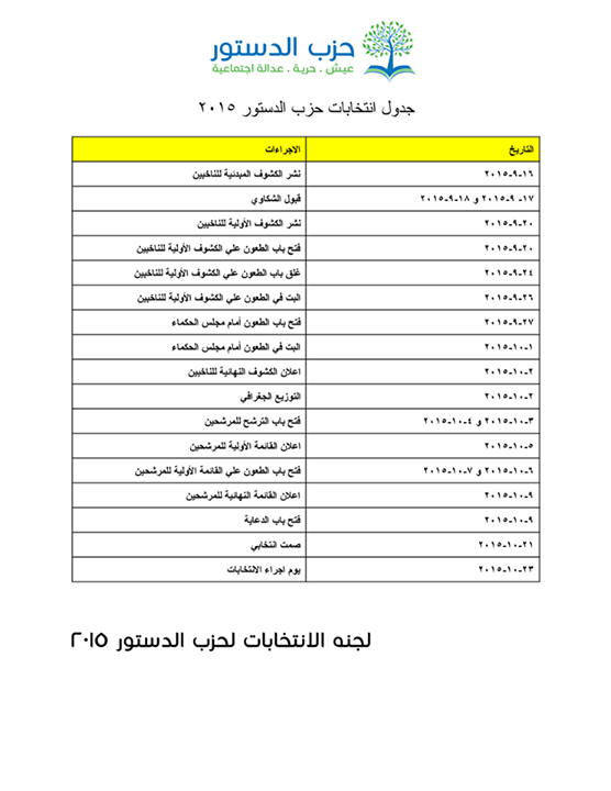 "الدستور" يعلن موعد إجراء الانتخابات الداخلية للحزب