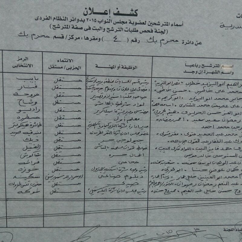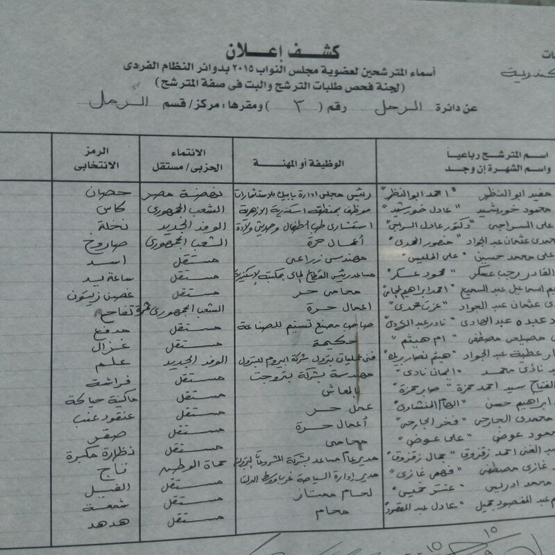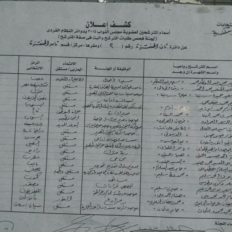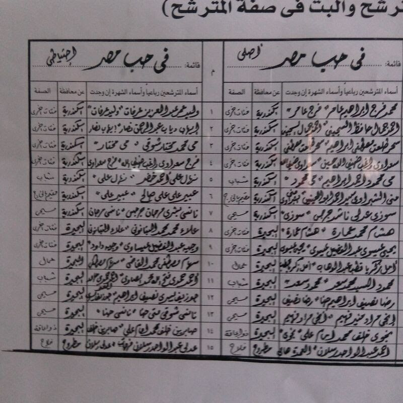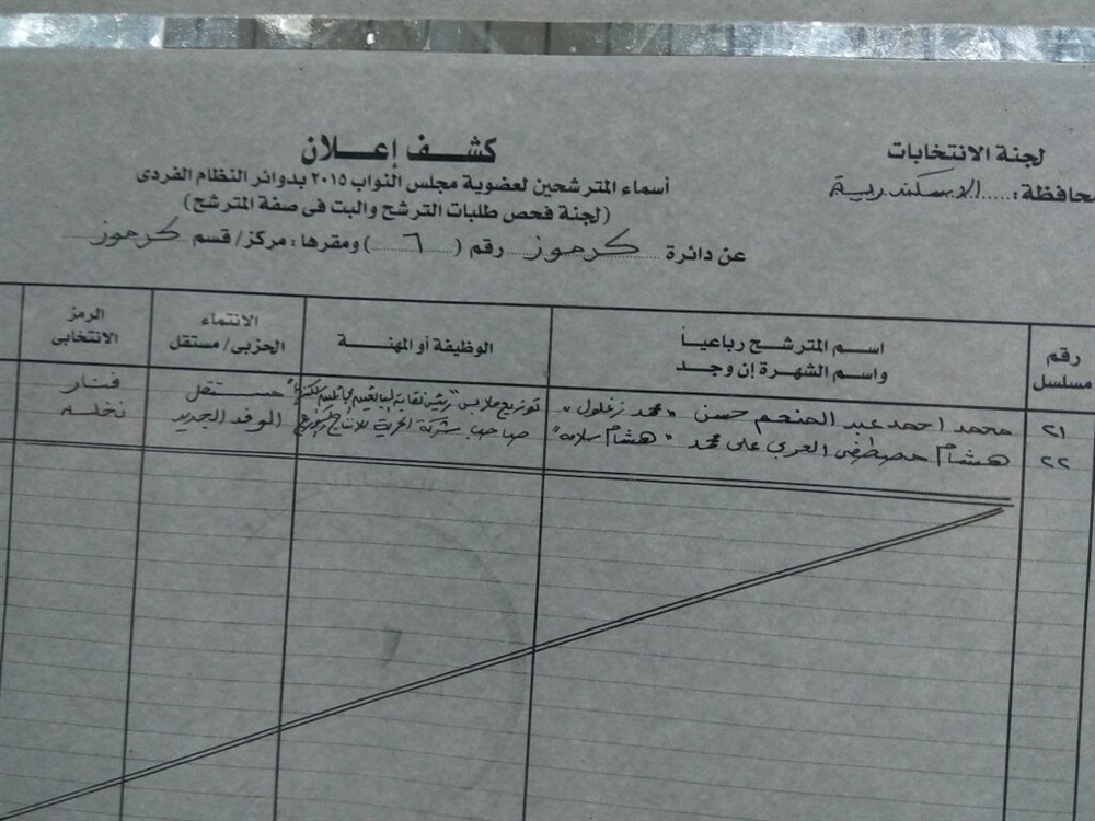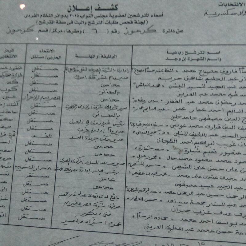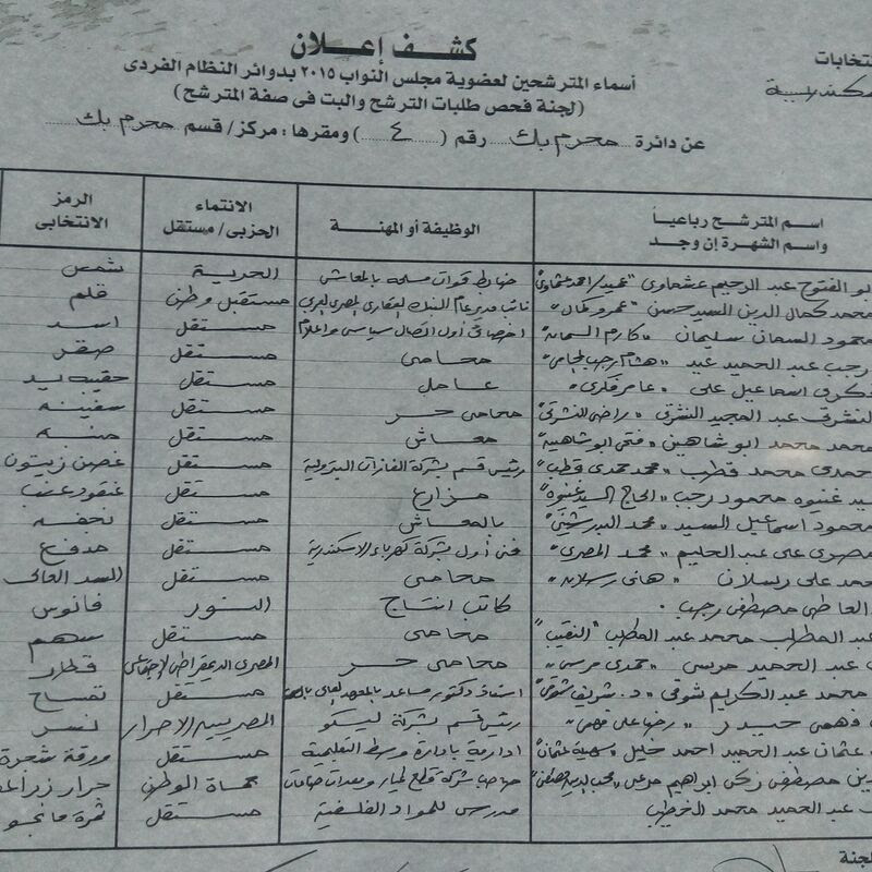 ننشر كشوف المرشحين والقوائم الانتخابية بالإسكندرية