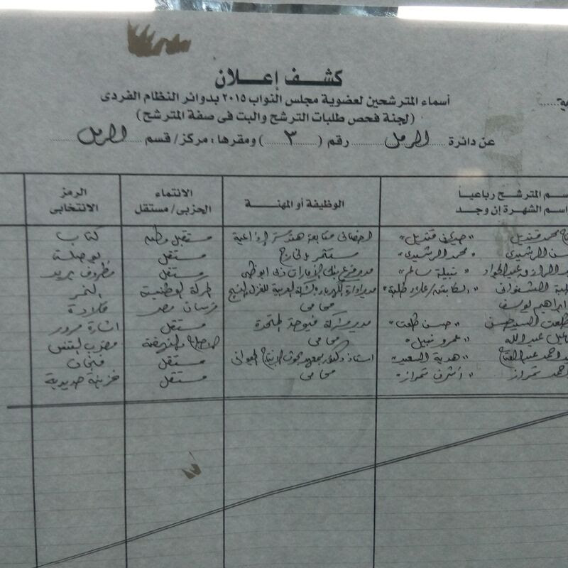 كما أعلن أن عدد المرشحين المقبولين بلغ 391 مرشحا، من أصل 414 تقدموا أوراقهم إلى اللجنة بـ10 لجان عامة، مما يعني أن عدد المرشحين المرفوضين بلغ 23 مرشحا فقط.