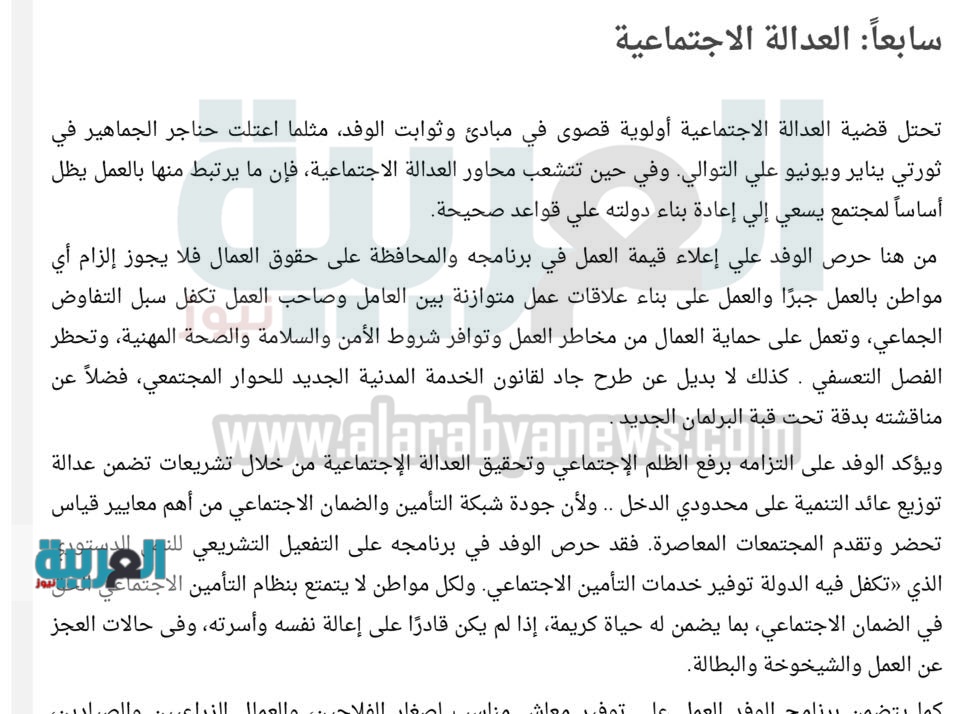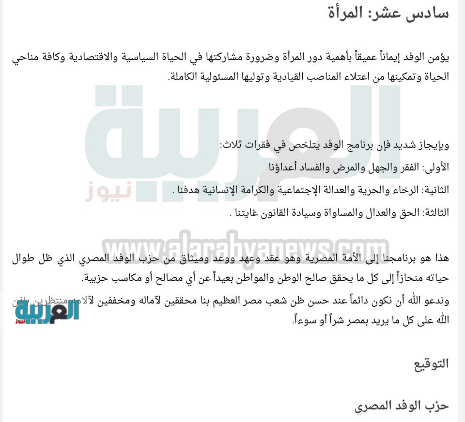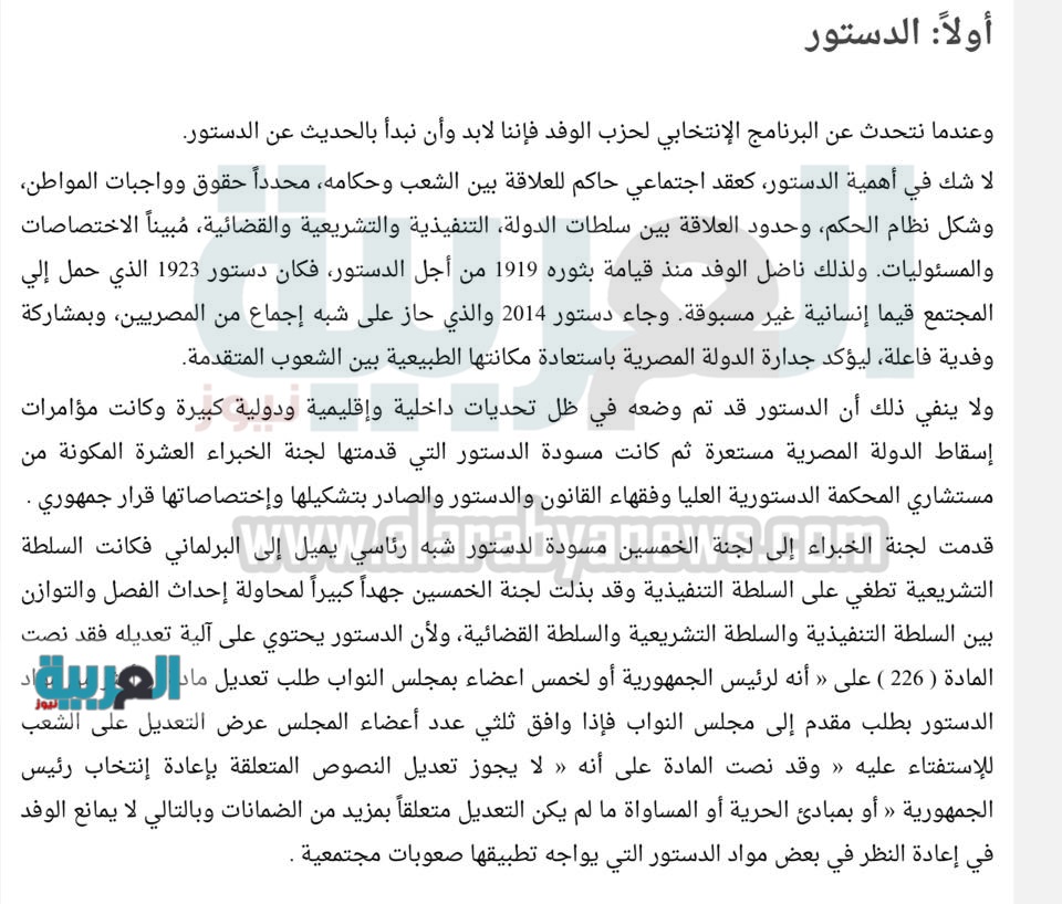 "العربية نيوز" تنشر البرنامج الانتخابي لـ"الوفد"