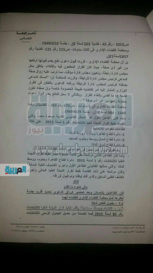 "العربية نيوز" تنشر مستندات طعن "صحوة مصر" ضد "العليا للانتخابات"