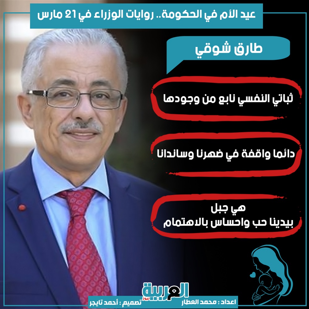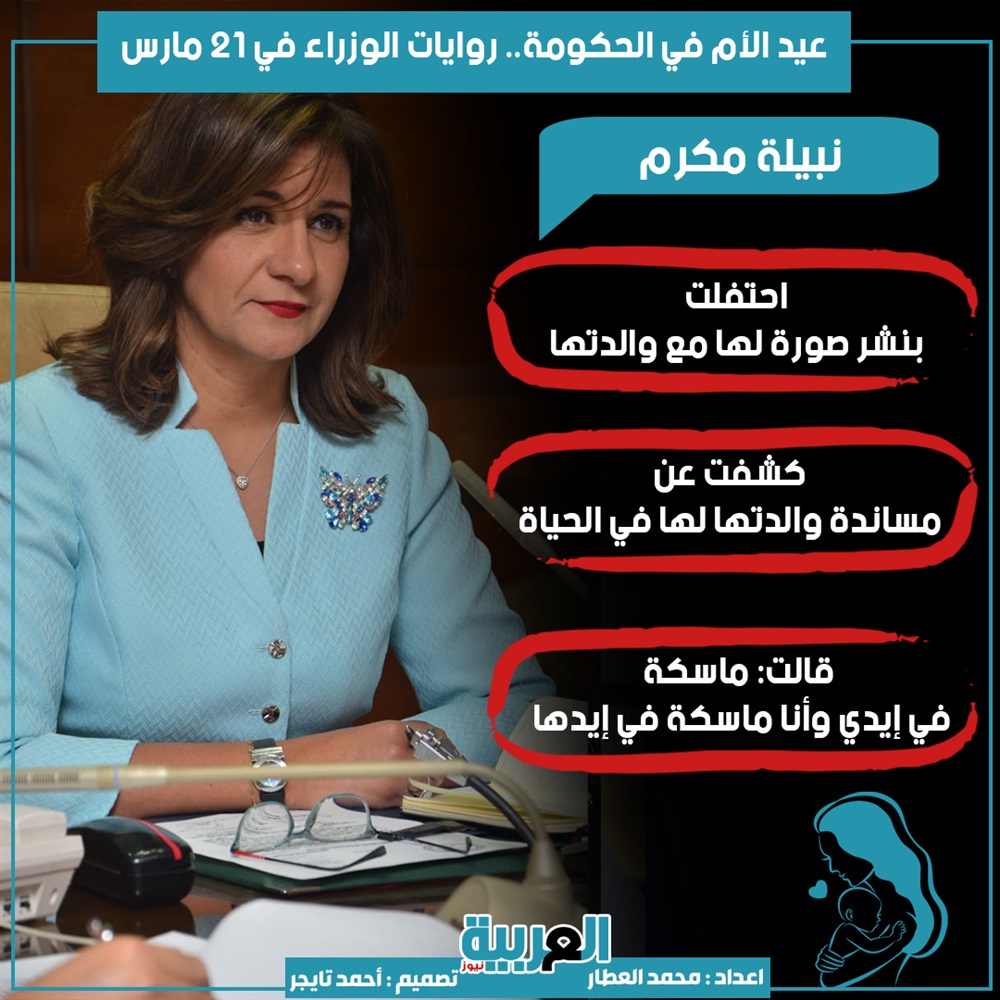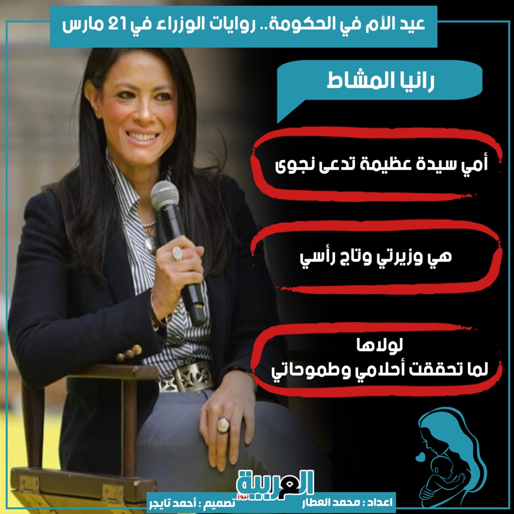 عيد الأم في الحكومة.. روايات الوزراء في ٢١ مارس "انفوجراف" الأحد 21/مارس/2021 - 02:45 م 3/21/2021 2:45:00 PM إعداد: محمد العطار - تصميم: أحمد تايجر وجه عدد من وزراء حكومة الدكتور مصطفى مدبولي عدد من الرسائل الهامة لأمهاتهم في عيد الأم، تقديرا لها ولدورها في خدمتهم.