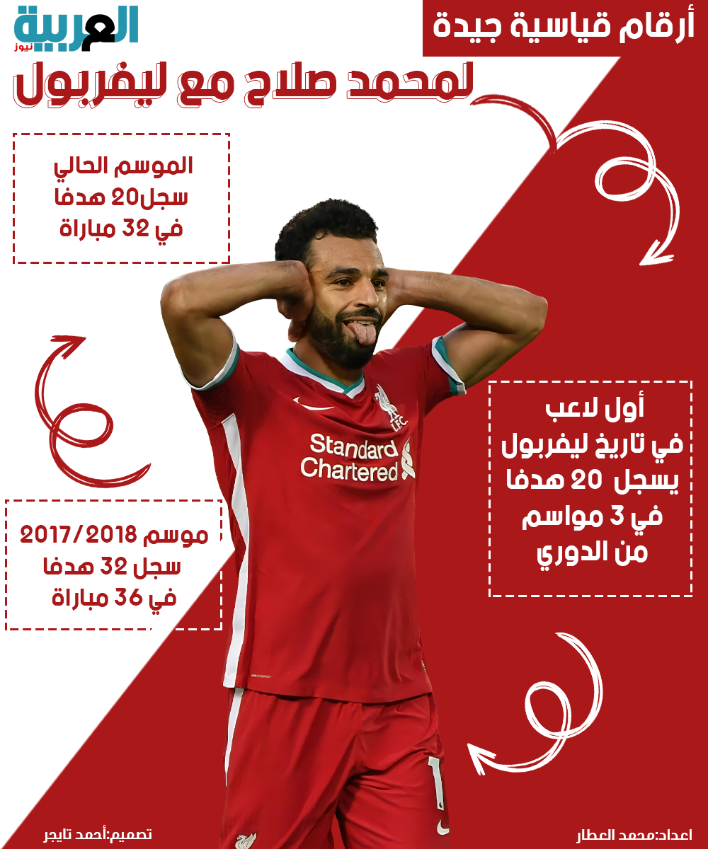 أرقام قياسية جيدة لمحمد صلاح مع ليفربول "انفوجراف" السبت 24/أبريل/2021 - 04:26 م 4/24/2021 4:26:36 PM إعداد: محمد العطار - تصميم: أحمد تايجر استطاع محمد صلاح نجم ليفربول الإنجليزي أن يسجل رقم مميز في هذا الدوري العملاق خلال الساعات الأخيرة.