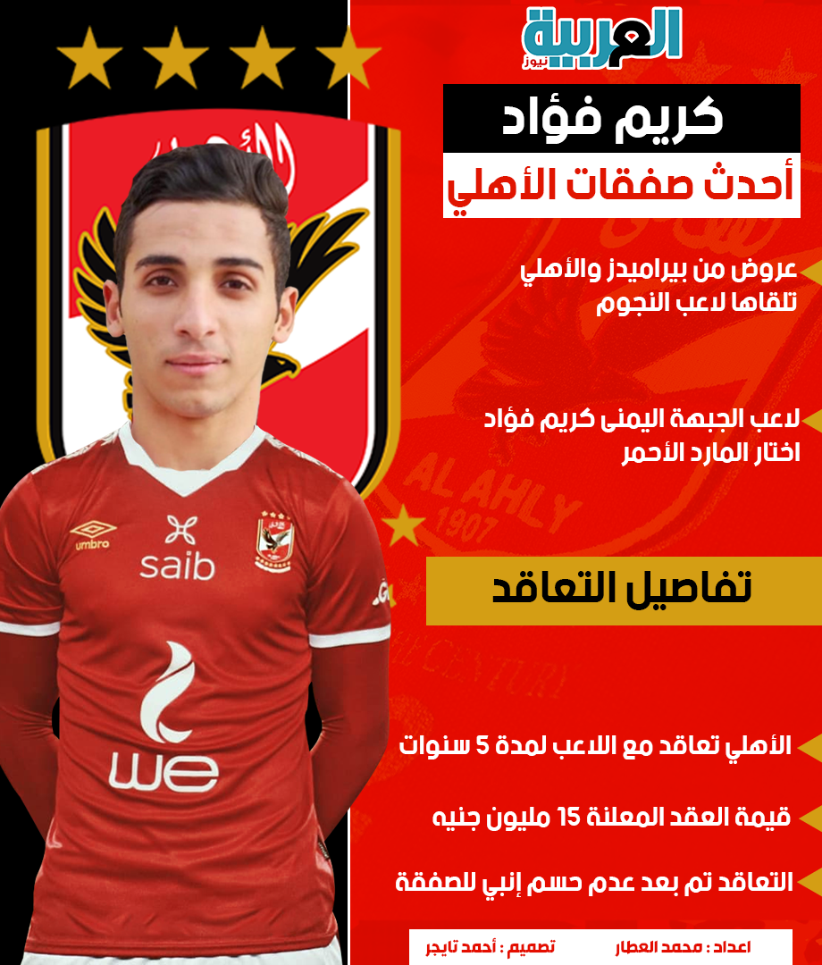 كريم فؤاد.. أحدث صفقات الأهلي "إنفوجراف" السبت 05/يونيو/2021 - 03:36 م 6/5/2021 3:36:06 PM إعداد: محمد العطار - تصميم: أحمد تايجر كريم فؤاد تصدر اسم اللاعب كريم فؤاد مؤشرات البحث على موقع "جوجل" بعد أنباء تعاقد النادي الأهلي معه.