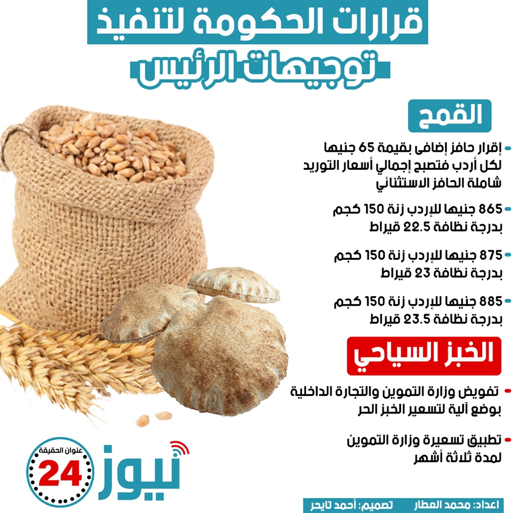 قرارات الحكومة لتنفيذ توجيهات الرئيس.. "إنفوجراف" الأربعاء 16/مارس/2022 - 06:29 م 3/16/2022 6:29:25 PM إعداد: محمد العطار - تصميم: أحمد تايجر أصدر مجلس الوزراء عدد من القرارات الهامة بشأن تنفيذ توجيهات الرئيس عبدالفتاح السيسي حول القمح والخبز السياحي والسلع.