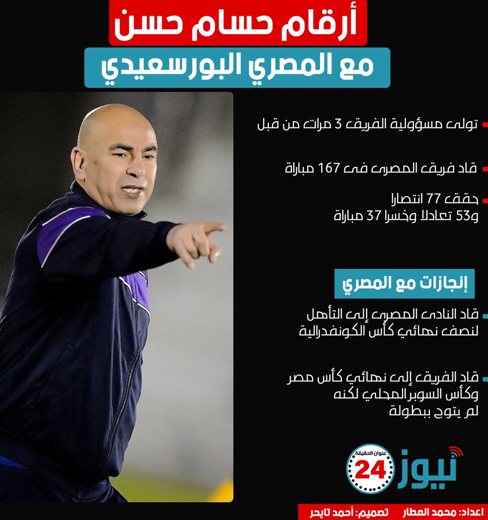 أرقام حسام حسن مع المصري البورسعيدي.. "إنفوجراف" الإثنين 30/مايو/2022 - 07:20 م 5/30/2022 7:20:49 PM إعداد: محمد العطار - تصميم: أحمد تايجر عاد حسام حسن مرة آخرى للإدارة الفنية للمصري البورسعيدي الذي خاض معه 3 ولايات سابقة.