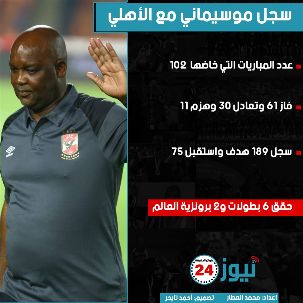 سجل موسيماني مع الأهلي.. "إنفوجراف" الإثنين 13/يونيو/2022 - 06:02 م 6/13/2022 6:02:53 PM إعداد: محمد العطار - تصميم: أحمد تايجر أعلن النادي الأهلي عن رحيل الجنوب أفريقي بيتسو موسيماني من القيادة الفنية للفريق بعد فسخ العقد بالتراضي.