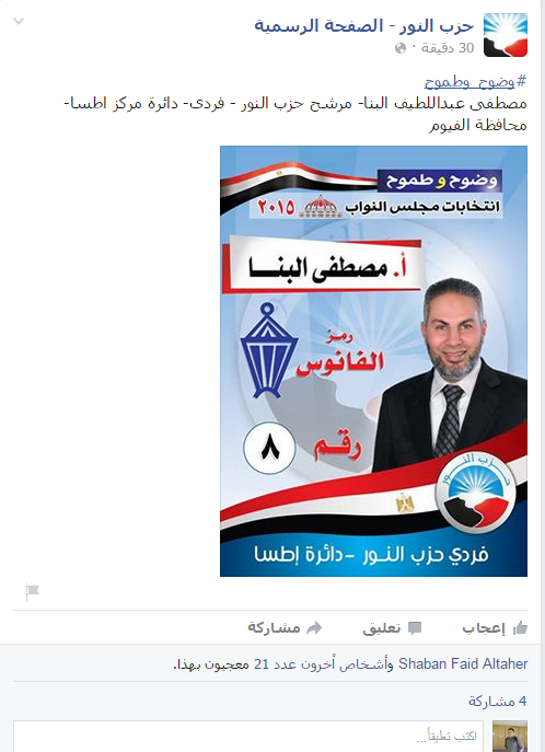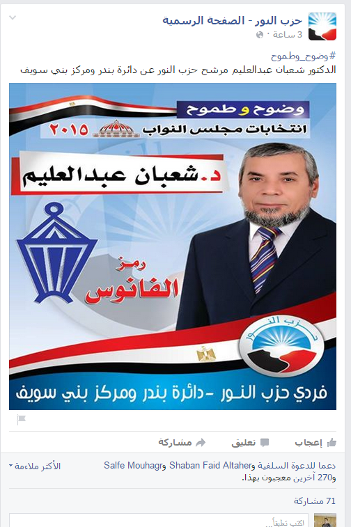 "النور" يخالف قرارات العليا للانتخابات ويطلق حملته الدعائية