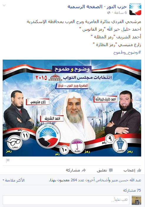 أطلق حزب النور السلفي، حملته الدعائية لمرشحيه على صفحته الرسمية على موقع التواصل الاجتماعي "فيس بوك" في جميع أنحاء الجمهورية، تحت عنوان "وضوح وطموح".
