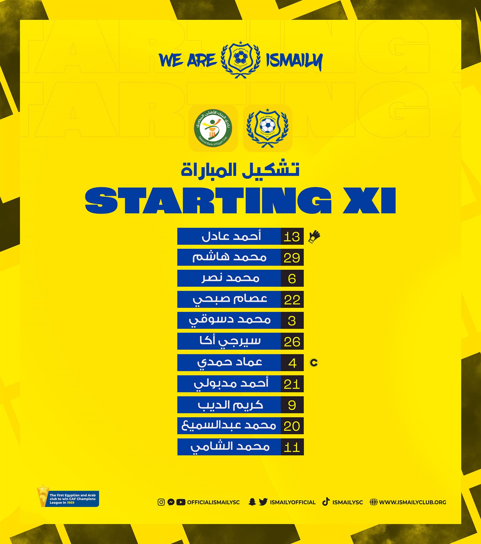 يبدأ الإسماعيلي مباراة اليوم بتشكيل كالتالي: