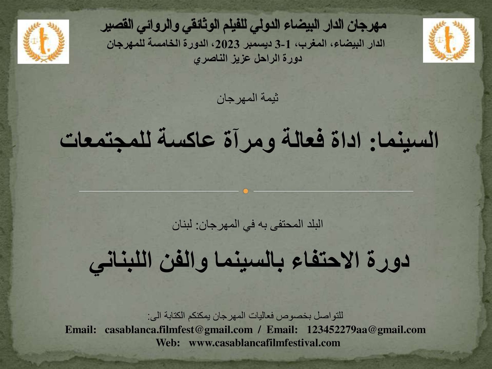 يشارك الفيلم الوثائقي القصير قلبى ومفتاحه لـ “مروة السورى” ضمن فعاليات مهرجان الدار البيضاء الدولي للفيلم الوثائقي والروائي القصير بدورته الخامسة ( دورة الراحل عزيز الناصري)، ومن المقرر انعقادها في الأول من ديسمبر القادم 1-3 ديسمبر 2023