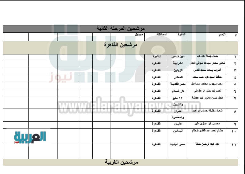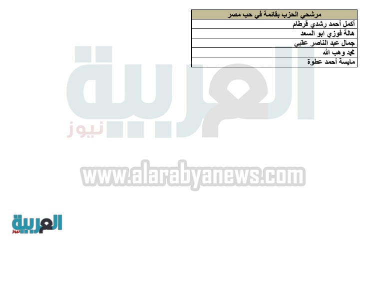 تنشر العربية نيوز أسماء مرشحي حزب المحافظين في جميع الدوائر ومرشحين الحزب في قائمة "في حب مصر".