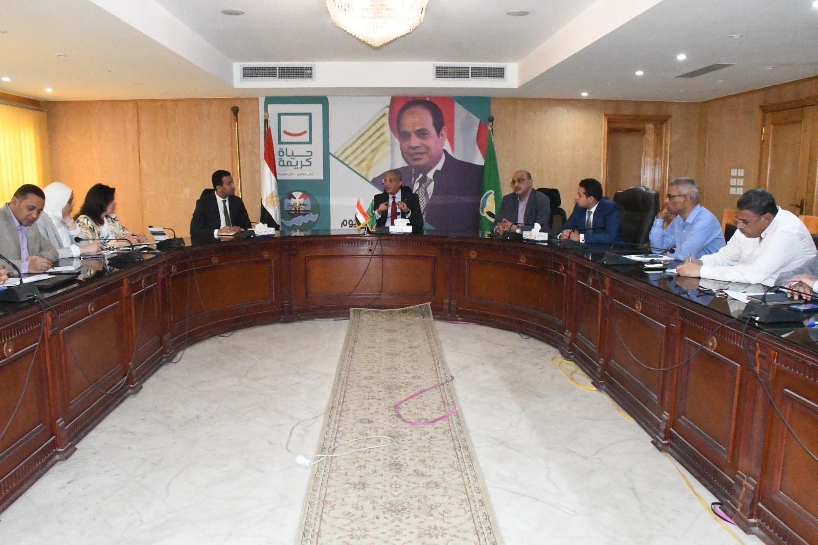 جاء ذلك خلال الاجتماع الذي عقد بديوان عام محافظة الفيوم، بحضور الدكتور محمد عماد نائب المحافظ، واللواء ضياء الدين عبد الحميد سكرتير عام محافظة الفيوم المساعد، والدكتور محمد التوني معاون المحافظ، المتحدث الرسمي لمحافظة الفيوم، والمهندسة كارمن ممدوح مدير المكتب الفني لمشروعات "حياة كريمة" بجهاز تعمير القاهرة الكبرى، والأستاذ أحمد شاكر رئيس مركز ومدينة إطسا، والدكتور أحمد ثابت رئيس مركز ومدينة يوسف الصديق، والأستاذ إسلام عبدالتواب منسق "حياة كريمة" بديوان عام المحافظة، ووفد شركة دار الهندسة، المكتب الاستشاري لمجلس الوزراء لإدارة ومتابعة مشروعات "حياة كريمة" بالفيوم، وعدد من وكلاء الوزارة ورؤساء القطاعات والهيئات وشركات المرافق.