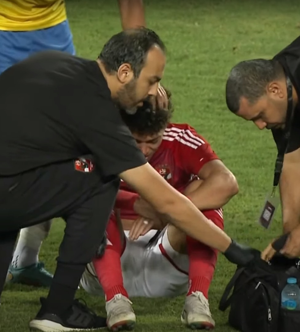 وسقط لاعب الأهلي عقب نزوله مرة آخرى وبكى من الإصابة ممسكًا بركبته التي لحقت به والتي أدت إلى خروجه واستبداله بنزول طاهر محمد طاهر، بدلًا منه.